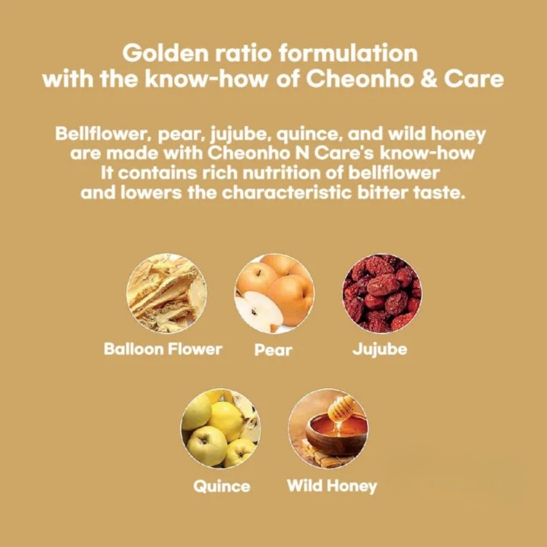 โข Ingredients: Balloon Flower Extract 74.6% (Solid 2%, Korea), Pear Concentrate 12% (Solid 68%, Turkey), Korean Honey, Jujube Extract, Quince Extract, Xanthan Gum