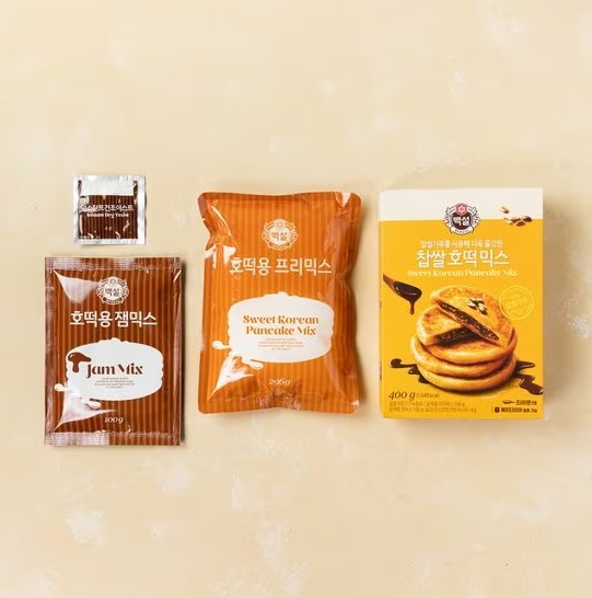 - Hotteok Jam Mix: [Brown sugar, Roasted peanut powder, Dextrose, Wheat flour, Soybean oil, Cinnamon powder, Maltodextrin, Cocoa powder]