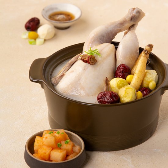 Purified water, chicken 45% (domestic), glutinous rice (domestic), non-glutinous rice (domestic), chestnut (domestic), Korean ginseng 0.7% (domestic), garlic (domestic), refined salt (domestic), jujube (domestic), onion (domestic), mixed seasoning {sodium L-glutamate (flavor enhancer)}, soybean powder, ginger (domestic)