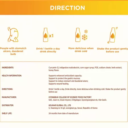 [30% Discount] [Kolmar] Curcumin Fast Drink Turmeric, Superior Absorption Digestion & Immunity (100ml*10 bottle) / 콜마 커큐민 패스트 음료 (100ml*10병)