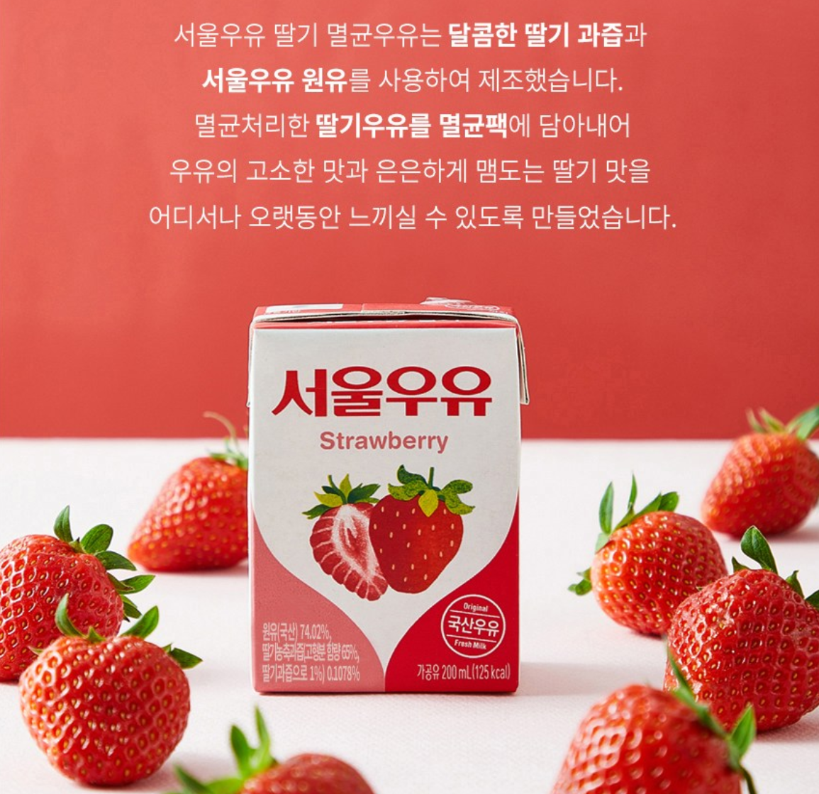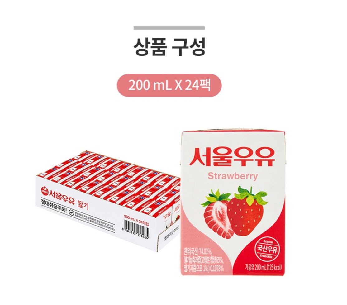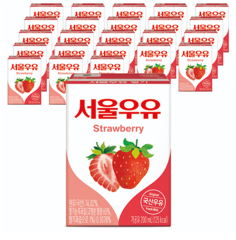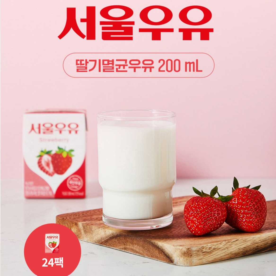 Seoul Milk Sterilized Seoul Milk Strawberry Flavored 200ml x 24 packs  /서울 우유 딸기맛 200ml x 24 팩