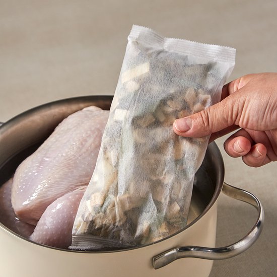 "Make broth easily and conveniently. Did you struggle with ingredients when making Samgyetang or Baeksoo broth? Now, without any hassle, easily and conveniently! Try making a flavorful broth by simply adding ingredients from Samgyetang and Baeksoo. "