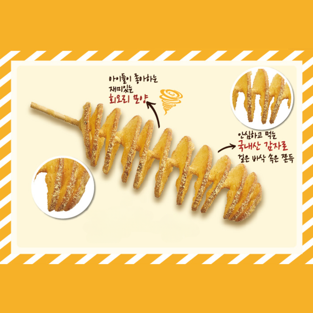 • Made with real Korean potatoes, spiral-cut and skewered for a street snack look
