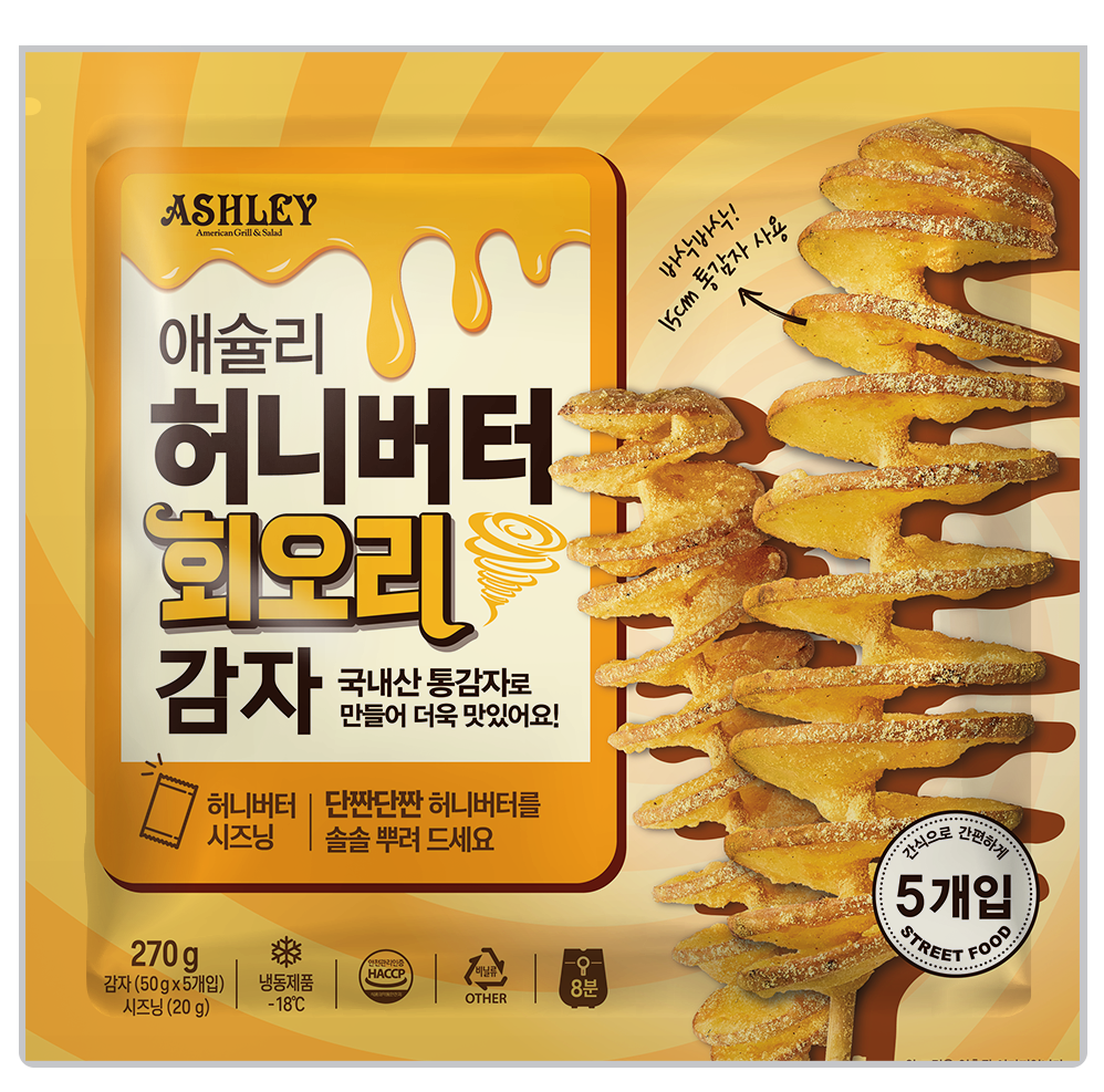 🌟 Ashley Honey Butter Tornado Potato Snack – 270g (50g x 5ea + Seasoning Pack)