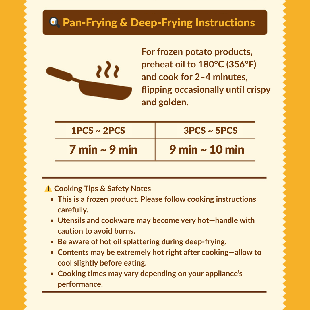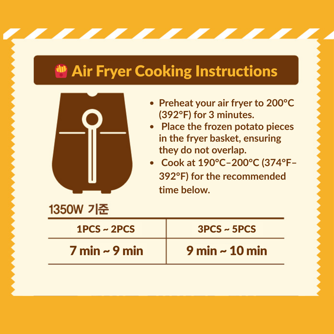 • Potato (Korean) 95%, Processed Cooking Oil (Palm Oil: Malaysia), Batter Mix (Wheat Flour, Rice Flour), Refined Salt, Vitamin B2, Yeast
