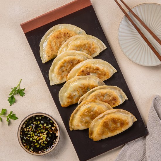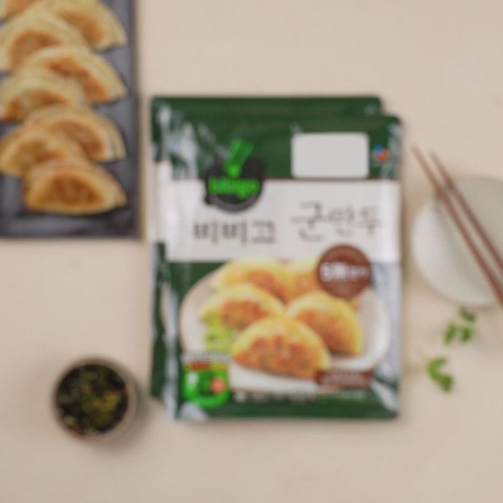 Pork and vegetable crispy dumplings from Korea's No.1 dumpling brand, Bibigo. Best pan fried dumpling choice with thin wrapper and juicy filling, chunky meat and vegetables.