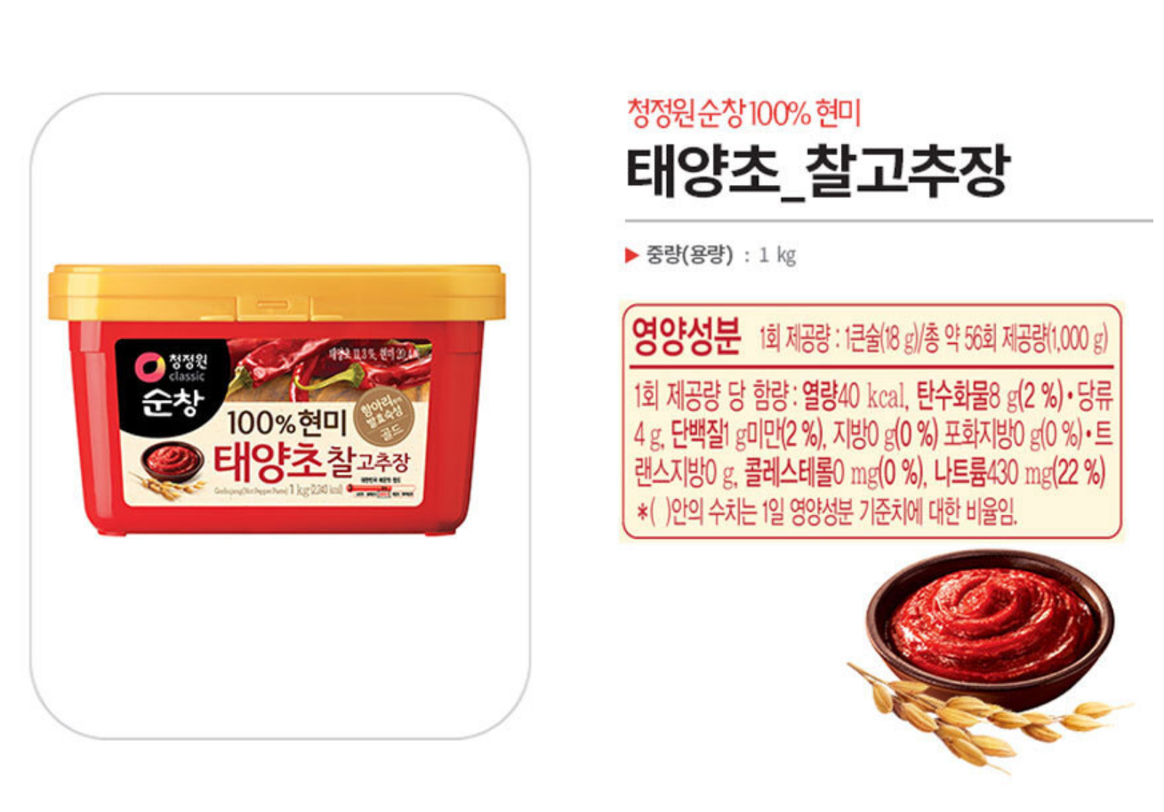 CJW Brown rice red pepper paste 1kg/청정원 현미 태양초 찰고추장 1KG