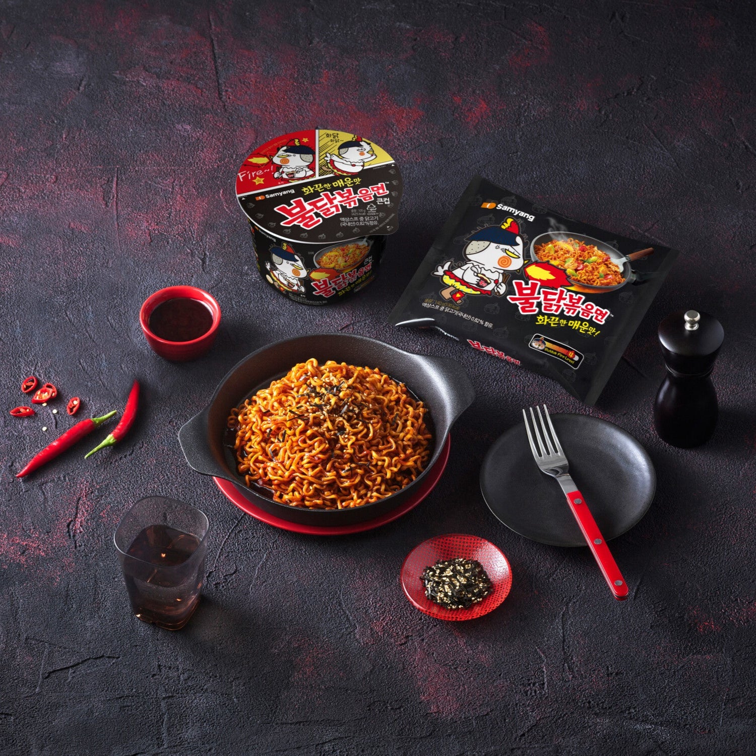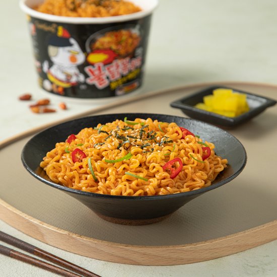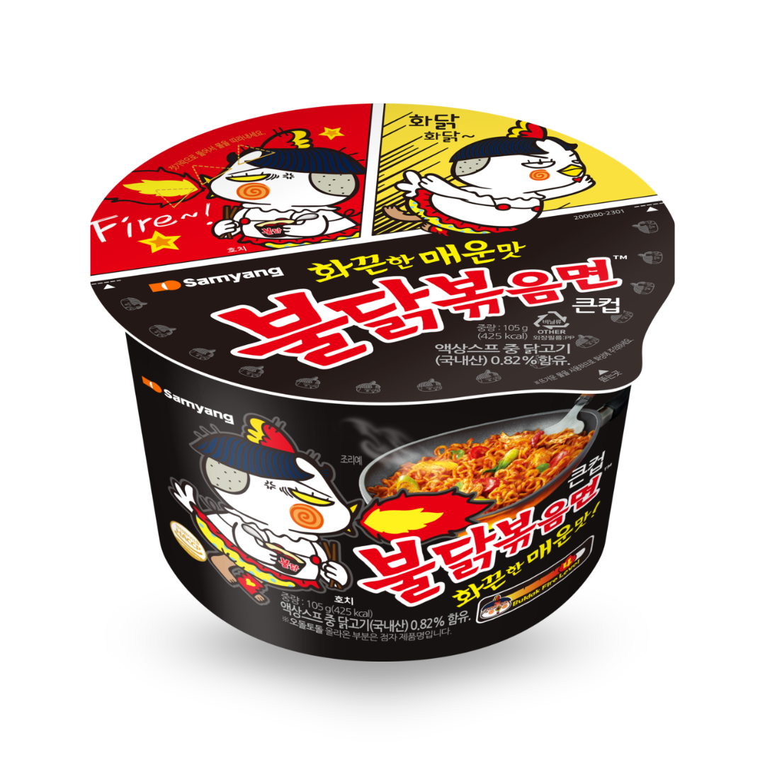 Iconic Korean fire noodles with a bold, spicy kick in a convenient big-size cup