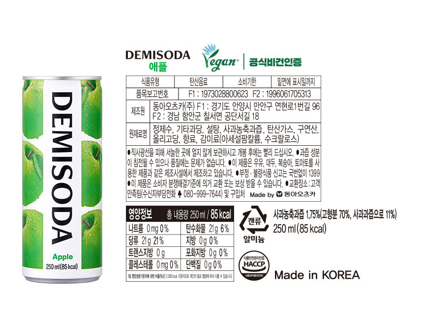 [Donga Otsuka] Demisoda Apple 250ml / 동아오츠카 데미소다 사과 250ml