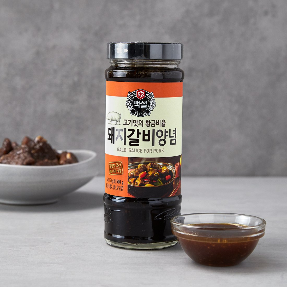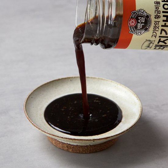Mixed soy sauce (hydrolyzed soybean protein: imported, brewed soy sauce extract: imported, refined salt, other sugars), sugar syrup, pear puree (Korean pear, Vitamin C), purified water, apple puree (apple, ginger, flavor enhancer, caramel color III, black pepper powder, refined salt, acidity regulator: Korean, Vitamin C), onion puree (Chinese), minced garlic, mirin, minced ginger, artificial sweetener (stevia), shiitake mushroom extract, red pepper extract.