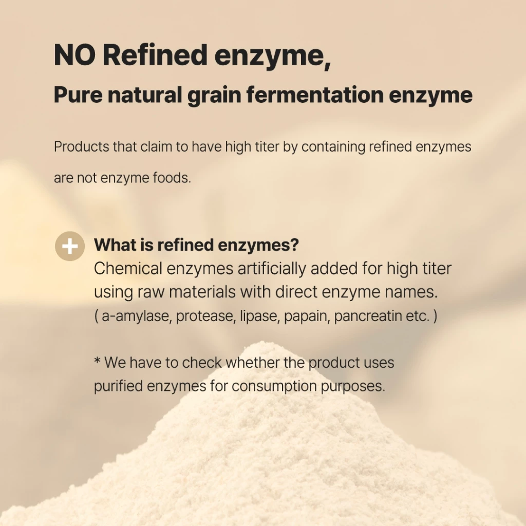 ย : Instead of purified enzymes, we carefully selected 20 types of Korea grains with naturally fermented.