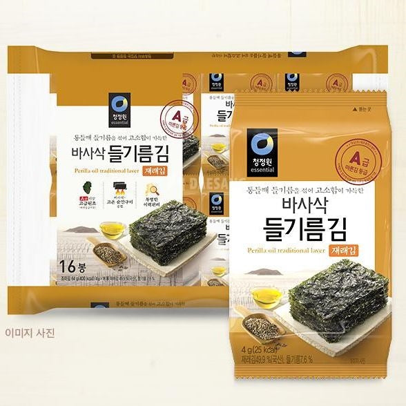 CJW Perilla Oil Traditional Crispy Laver 4gx16ea - 청정원 들기름 바사삭김 4gx16개입